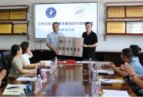 2025年7月15日,学校与阿拉善盟疾病预防控制中心举行实践教学基地挂牌暨签约仪式。学校党委常委、副书记韩蕃璠,学校教务处处长徐涛,阿拉善盟卫健委党组书记李发荣,阿拉善盟疾病预防控制中心领导班子成员及相关部门负责人,公共卫生学院领导班子成员及教师代表参加。