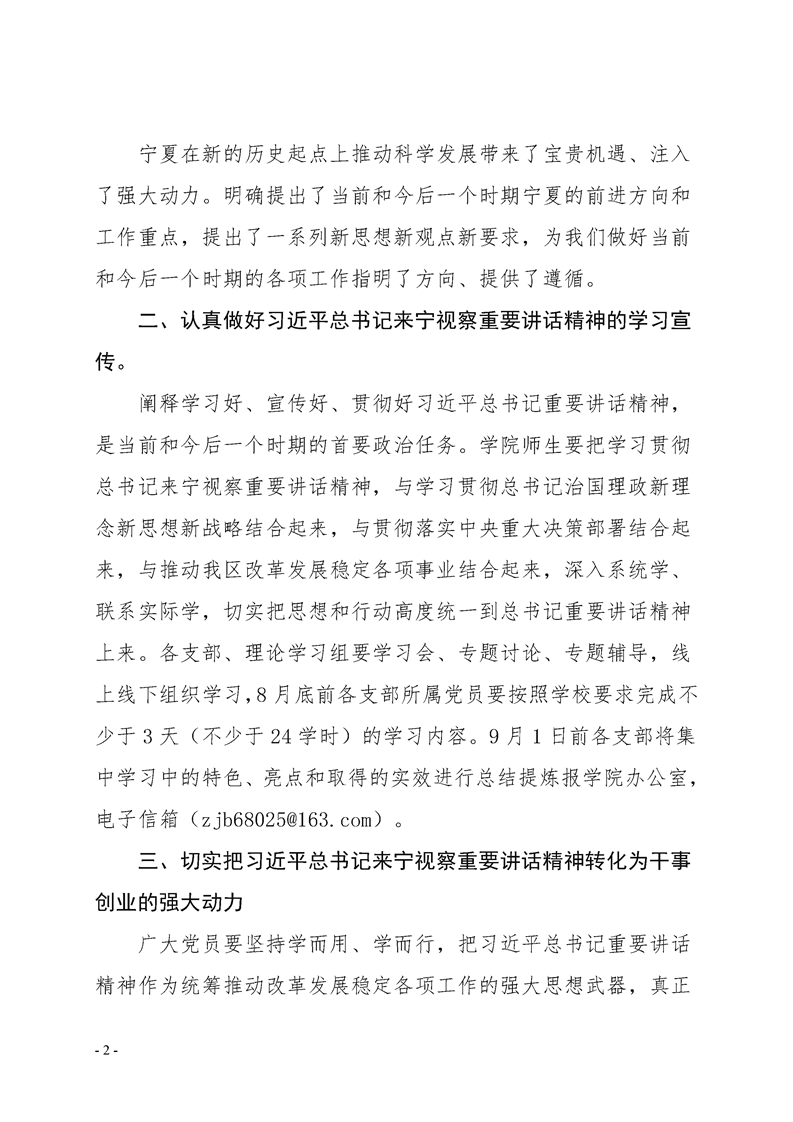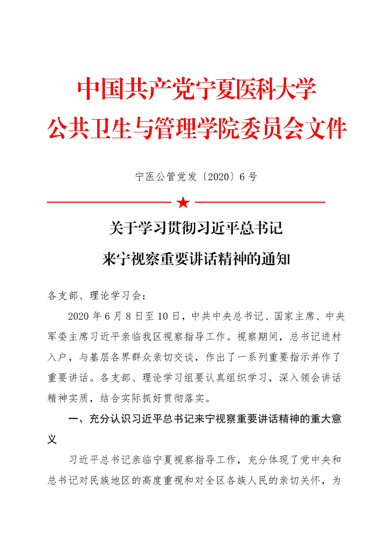 关于学习贯彻习近平总书记 来宁视察重要讲话精神的通知