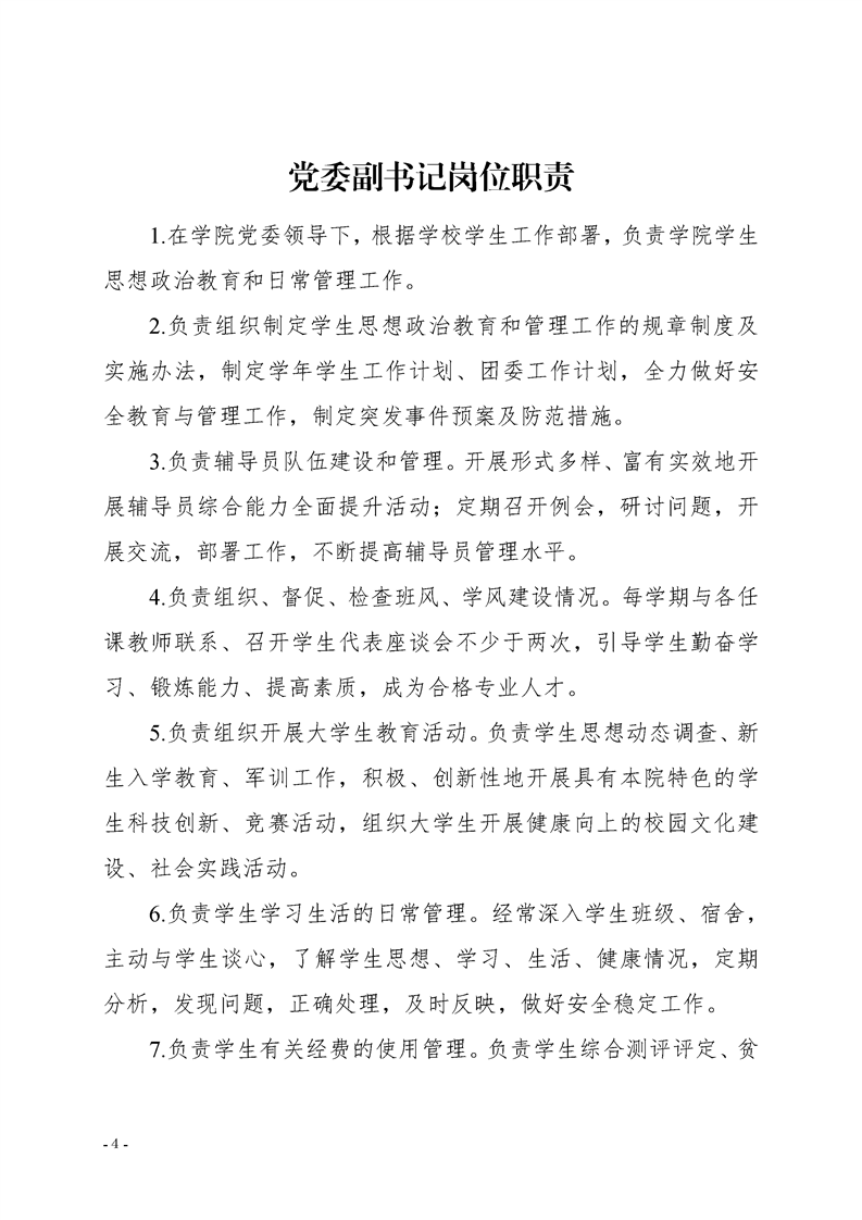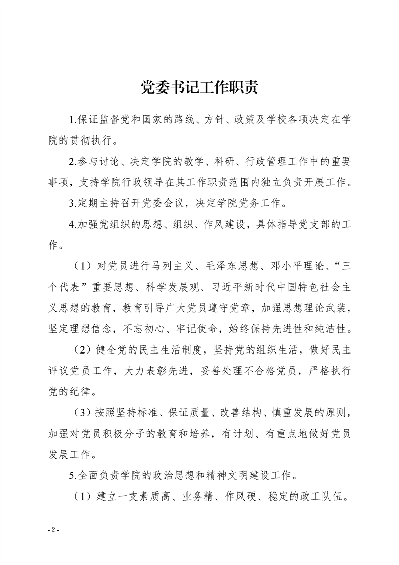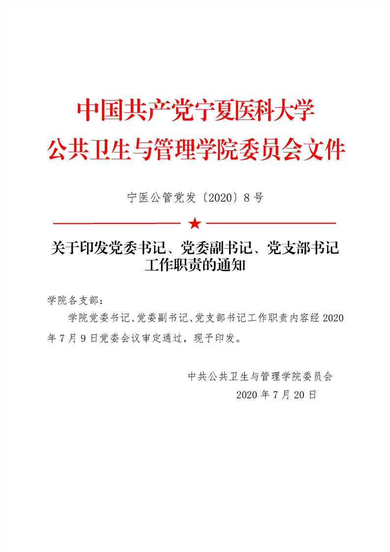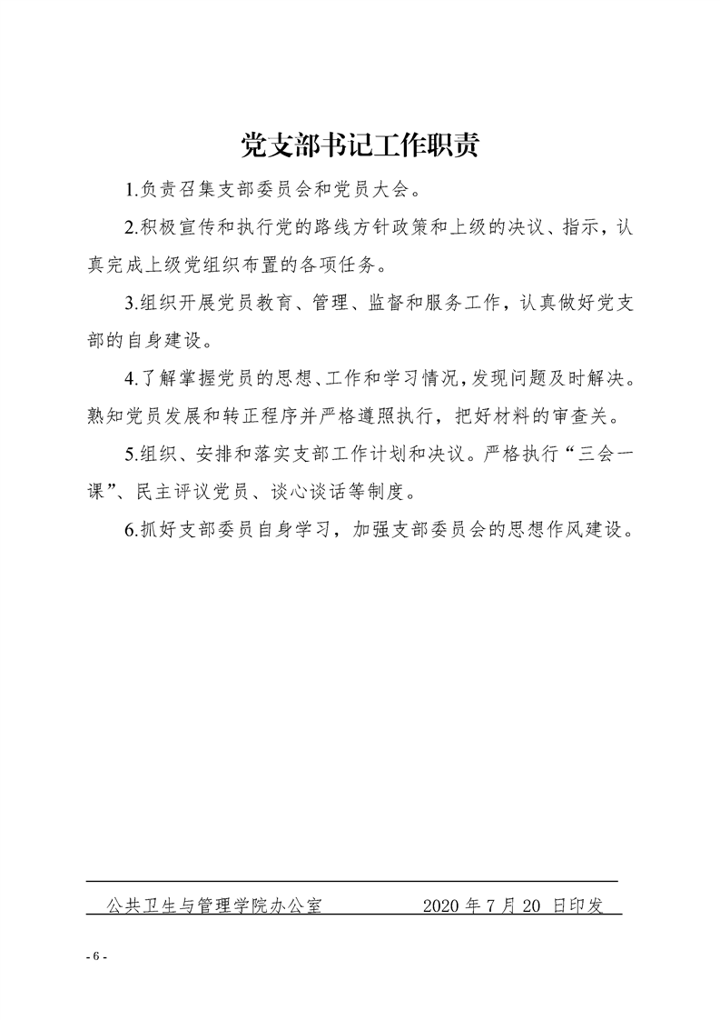 关于印发党委书记、党委副书记、党支部书记 工作职责的通知