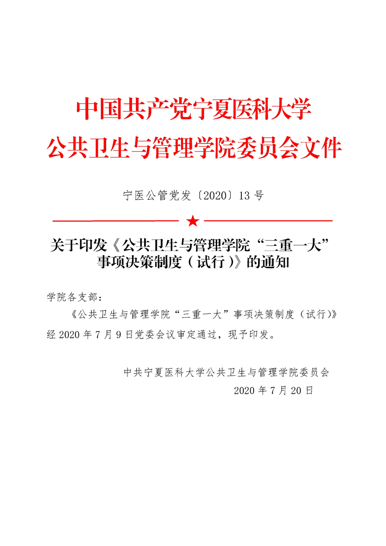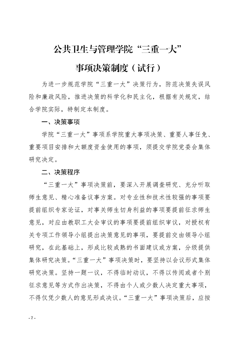 关于印发《公共卫生与管理学院“三重一大” 事项决策制度(试行)》的通知
