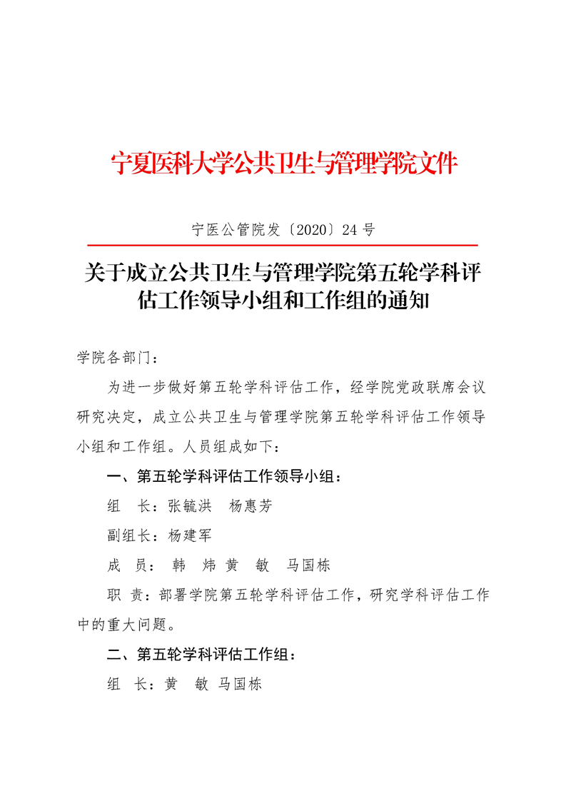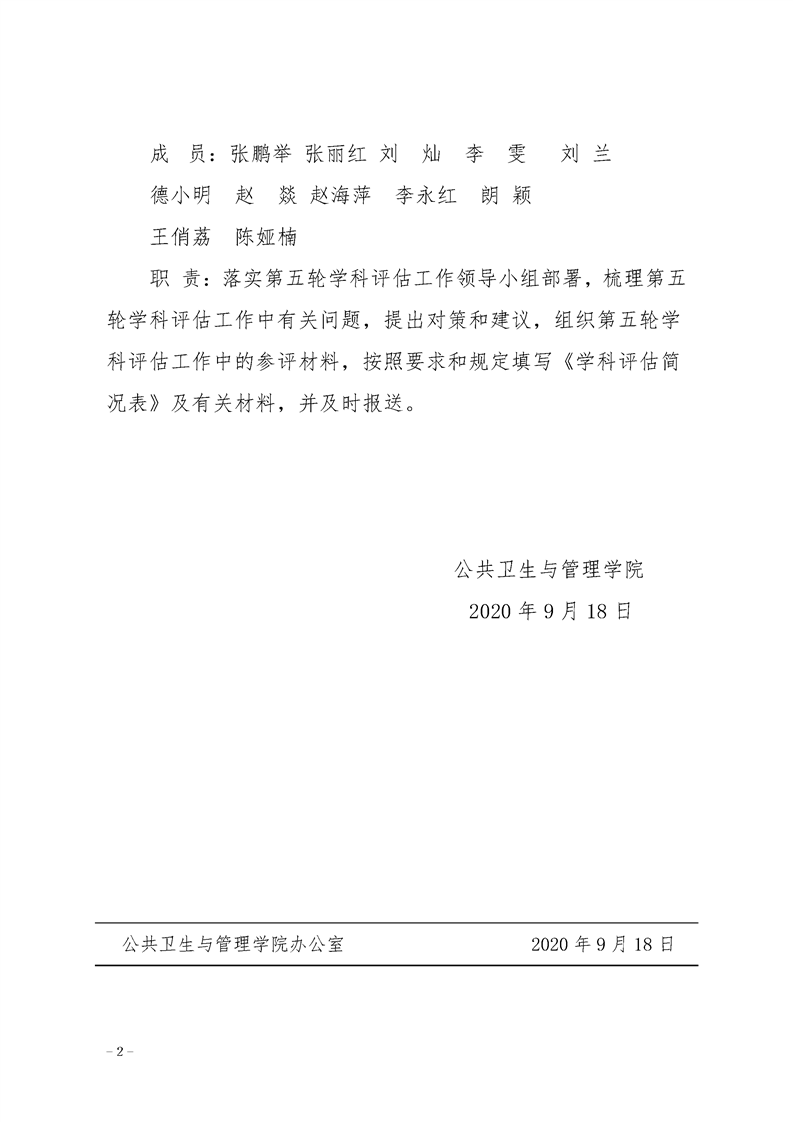 关于成立公共卫生与管理学院第五轮学科评估工作 领导小组和工作组的通知