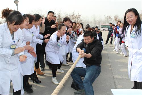 拔河比赛共分了八个组。各个参赛队在啦啦队的号子声中,每个队员用尽全力紧紧抓住那个粗壮的绳子,咬紧牙关,谁都不想放弃一丝一毫赢的可能。通过比赛,大家的心都结结实实的凝聚在了一起。最终,行政后勤组赢得比赛第一名,医技组获第二名,针推组获第三名。
