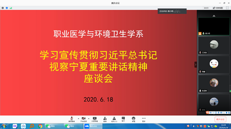 根据学校工会的工作安排,公共卫生与管理学院分工会于6月18日—6月21日采用线上会议的形式开展了全院大学习活动,认真学习宣传贯彻习近平总书记视察宁夏重要讲话精神,全体教职工参加了集中学习。