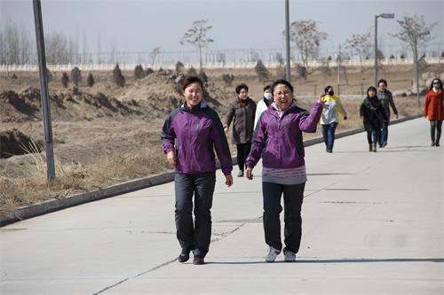 活动开始后,学院女教工从厚生楼出发,向西沿学校外围环形健步走一圈。大家兴致勃勃,一路欢声笑语,沐浴着明媚的阳光,呼吸着清新的空气,欣赏这校园的美丽景色,体会着学校的发展,也深深地感受到了学校大家庭的温暖。