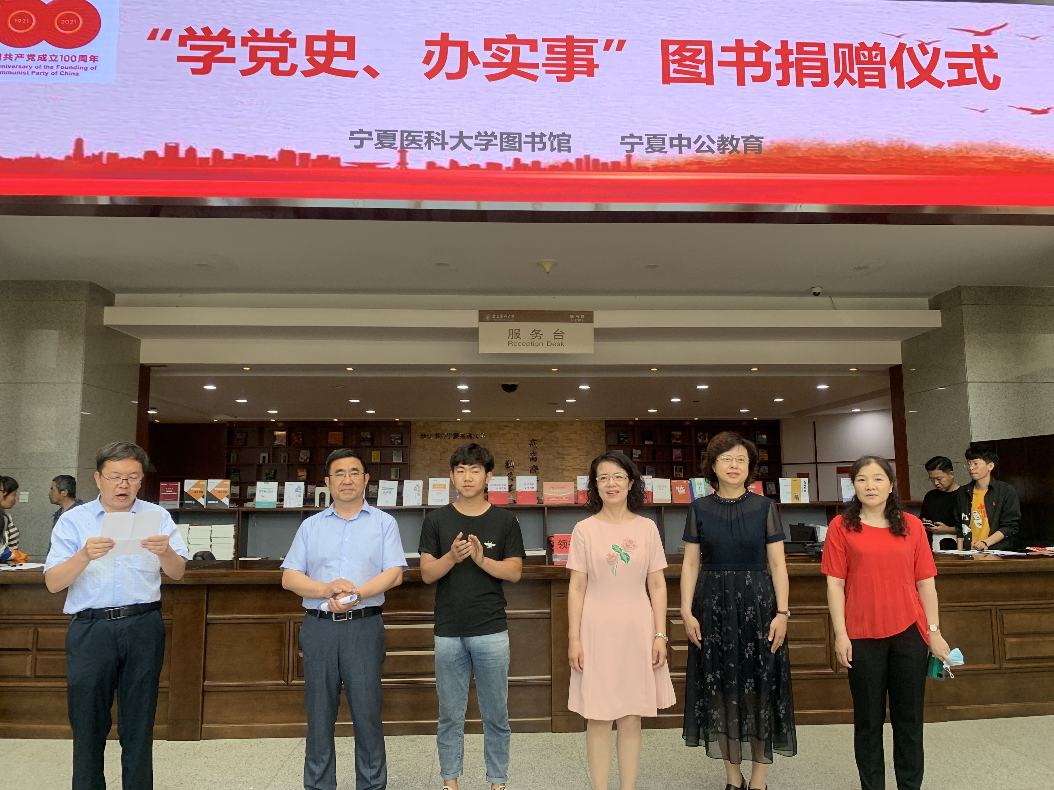 6月10日上午,伟德国际1946源于英国图书馆党总支、分工会和北京中公教育科技有限公司宁夏分公司联合开展的“学党史、办实事”赠书活动在雁湖校区图书馆启动。学校副校长刘志宏、图书馆领导班子及北京中公教育科技有限公司宁夏分公司主任张龙出席了捐赠仪式,近500余名师生参加了活动。
