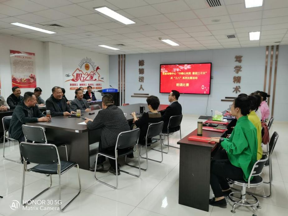 在春回大地,鸟语花香的3月,我们迎来了第112个国际妇女节,实验动物中心分工会为了喜迎学校党代会,献礼二十大,感恩党的领导,感恩社会主义光辉照耀,也为了丰富广大女职工的节日氛围,活跃职工的生活,展现我中心女职工风采,更好团结促进女职工向着学校事业发展更高目标迈进,3月29日下午举办了庆“三八”系列主题活动之朗诵比赛,本次朗诵比赛由马建斌副主任主持。马主任首先对本次活动的开展给予了大力支持和美好的期待,并向中心女职工表达了节日的衷心祝愿。