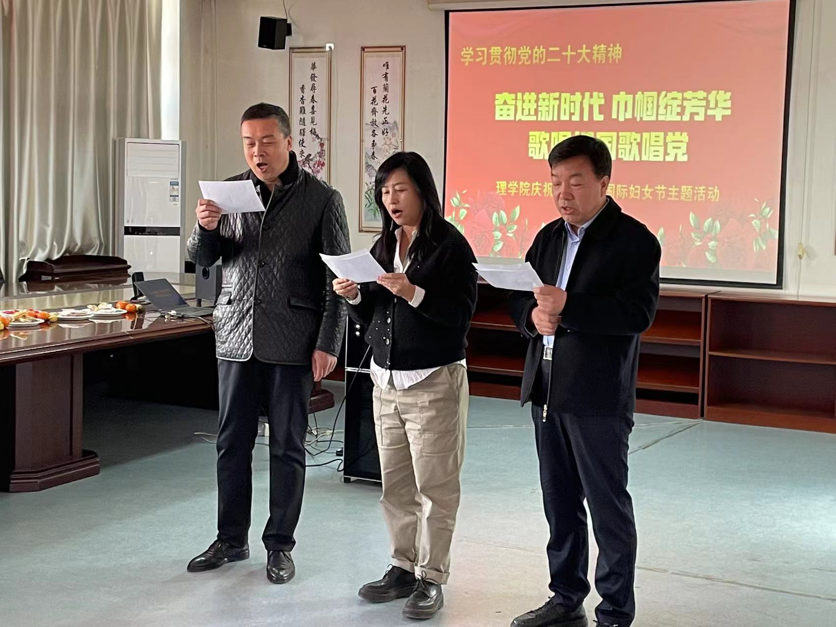 为深入学习贯彻党的二十大精神,庆祝“三八”国际妇女节,丰富教职工文化生活 ,提高文化素养,更好地展现学院女职工风采,3月10日上午,理学院在厚生楼举办“奋进新时代 巾帼绽芳华 歌唱祖国歌唱党”庆祝“三八”国际妇女节主题活动。活动由学院分工会主席白启钧主持,全体教职工参加。