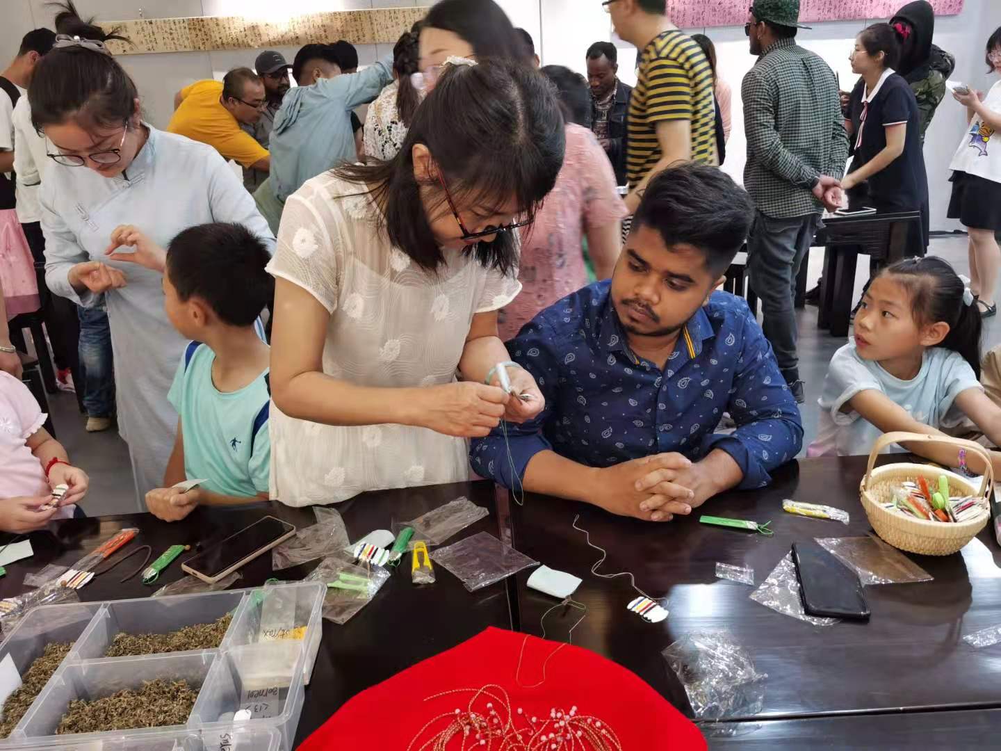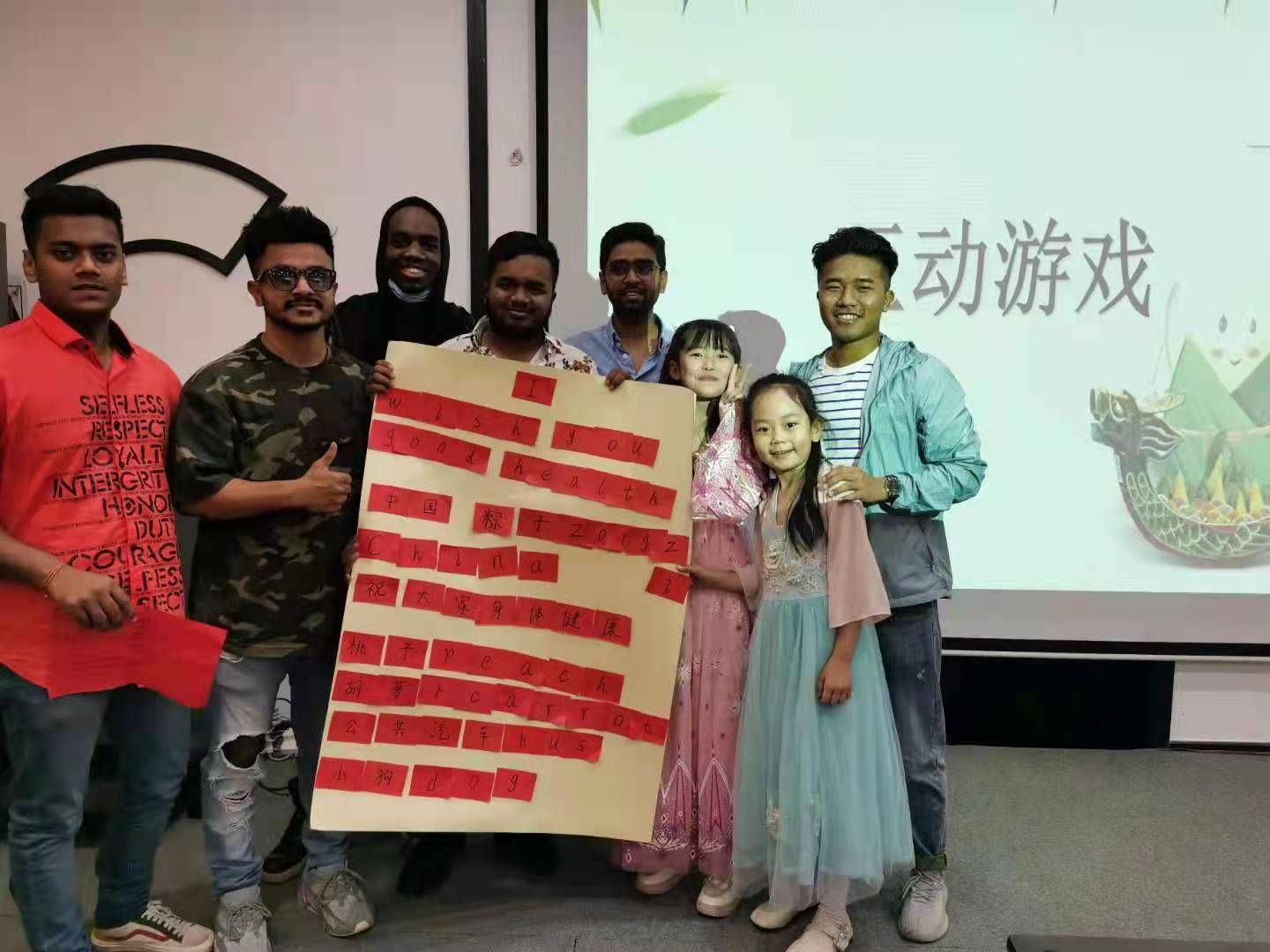 本次活动邀请了10名不同年龄的小学生参加,与留学生一起进行了文艺表演、互动游戏、英语教学、包粽子、缝制香包等一系列活动,大家其乐融融,欢乐满堂。在互动环节中,小学生们为留学生献唱了古诗、朗诵了国学经典、表演了武术,留学生为小学生表演了舞蹈、演唱,进行了英语教学,一起做了游戏,大小朋友不分你我,互相配合、互相关心。