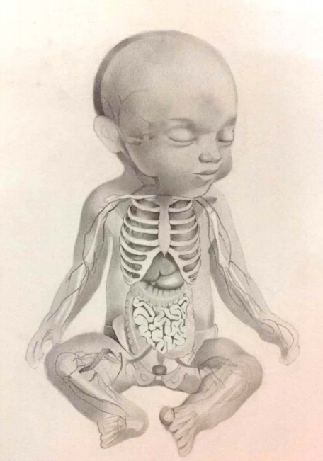 主题:婴儿的胸腹部解剖画