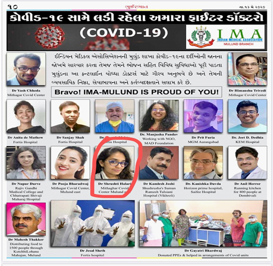 伟德2018届印度籍校友Shrushti收到印度当地媒体的表彰,印度医学委员会在报纸上刊登表彰那些冒着生命危险为了拯救新冠肺炎患者的优秀医务者,为他们忘我的精神和高尚的职业道德而感到骄傲。