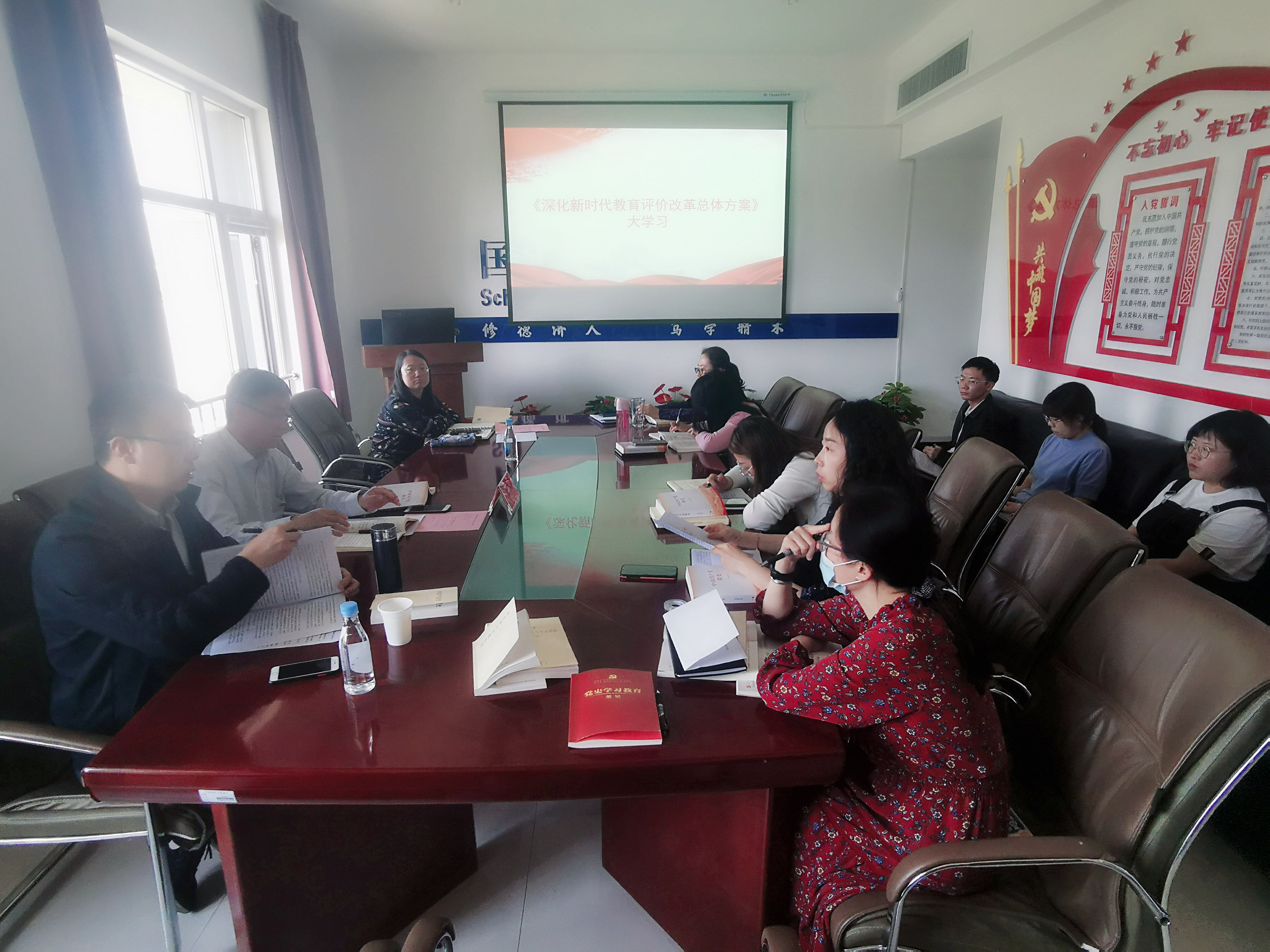 会上,韩晓宝副院长领学了《深化新时代教育评价改革总体方案》、教育部负责人就《总体方案》答记者问、以及27条负面清单等内容,同时还对《总体方案》出台的背景和意义、基本定位和特点、总体要求、改革任务和组织实施的要求等进行了讲解,努力实现教育评价改革内容教职工学习培训全覆盖。