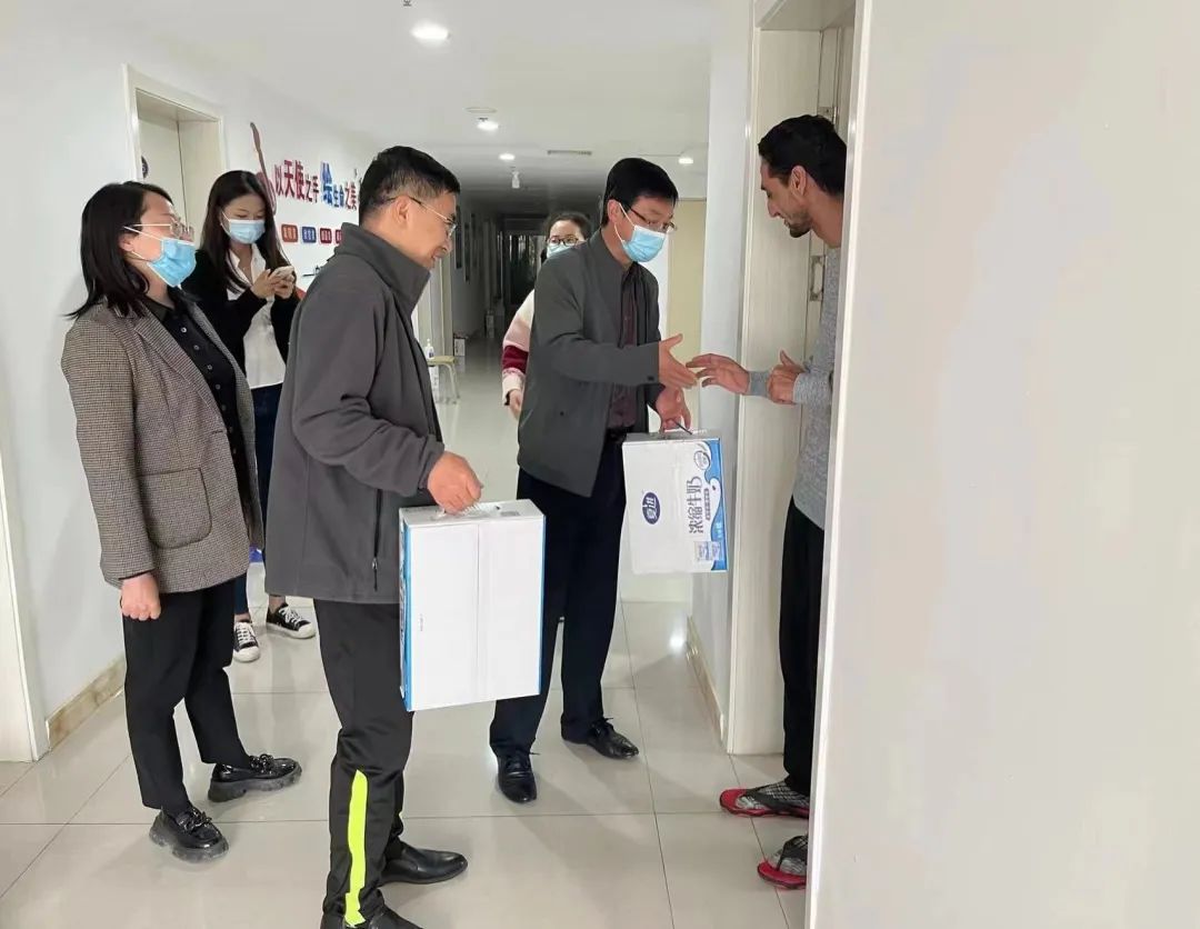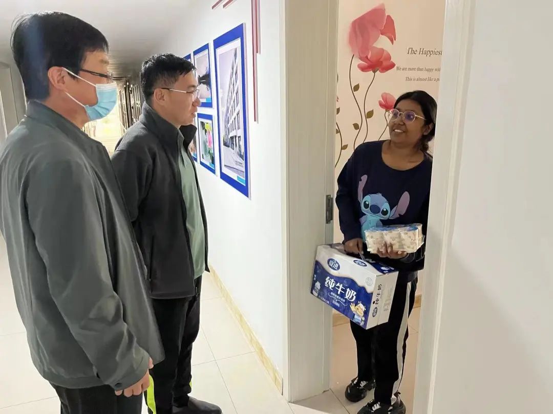为落实“平安校园建设”工作,确保安全、文明、健康地度过 “五一”假期,4月29日,国际教育学院直属党支部书记吴川、院长单彬、副院长马昕带领辅导员走访了全体留学生宿舍,全面了解留学生所需所求,表达学院的深切关怀,并就疫情防控期间的相关注意事项与宿舍安全卫生提出建议。