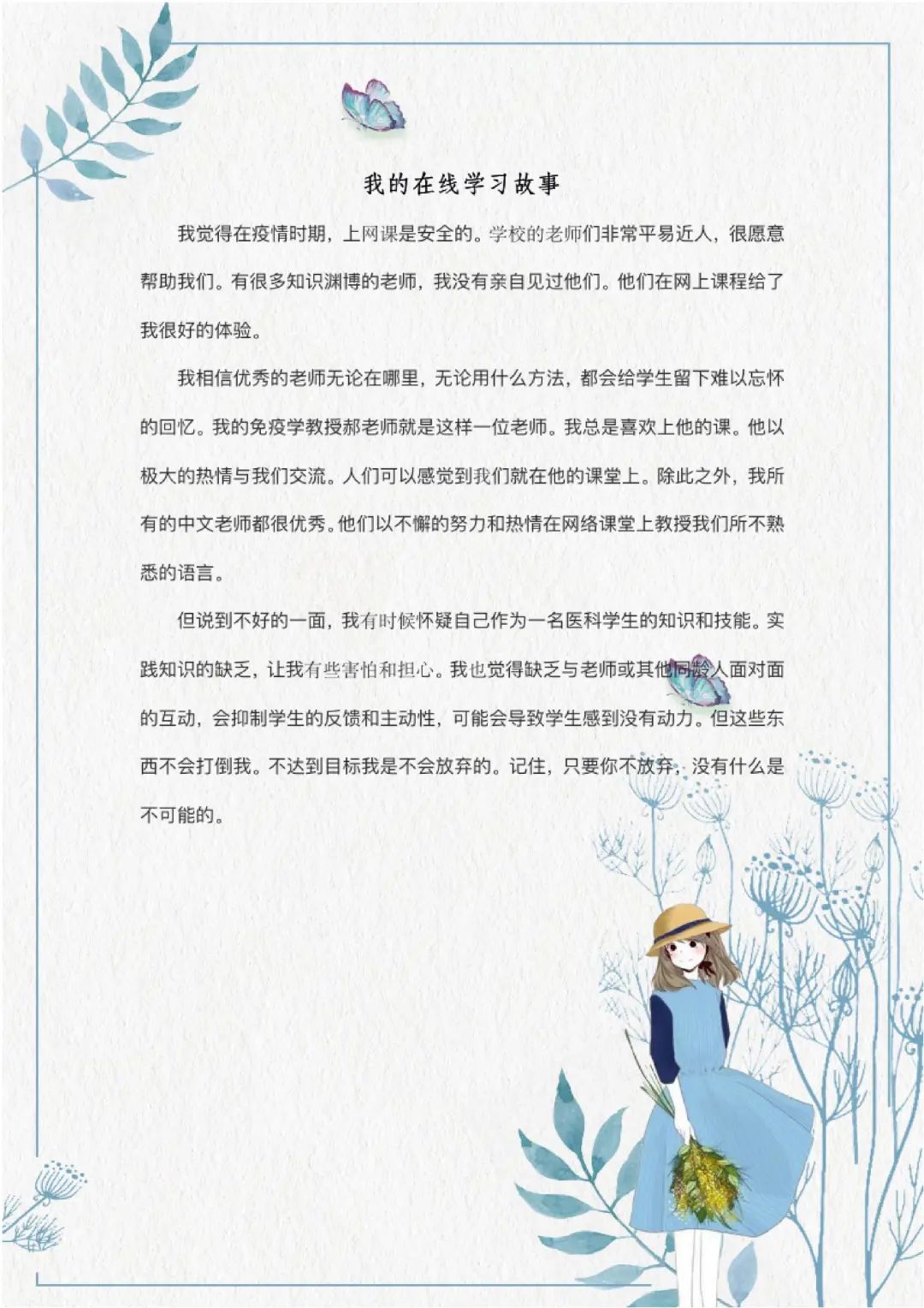 2020年新冠肺炎疫情席卷全球,留学生们的学习方式也发生了前所未有的变化,“线上学习”成为了留学生的学习常态。“停课不停教,停课不停学。”老师们和留学生们通过线上教学相知相伴已近三年的时间。虽然校园的样子可能已经模糊,但留学生们对学校的情感从未变淡;虽然少了老师们面对面的叮咛,但留学生们的自我学习能力越来越强;虽然不能进入实验室动手实践,但留学生们对知识的渴求日益强烈。线上教学带给留学生们这段特别的学习经历,让每一位留学生都有所收获、有所成长。