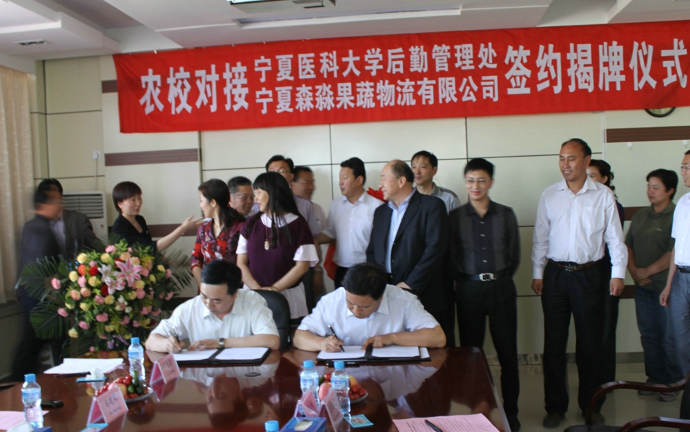 2011年5月18日,伟德后勤管理处和宁夏森淼果蔬物流有限公司“农校对接”签约揭牌仪式在森淼果蔬物流基地隆重举行,签约仪式由处党总支副书记汤榕主持。校办张生主任、宣传部周文涛、人事处朱建华、发展规划处刘志宏等部门负责人参加了本次签约活动。