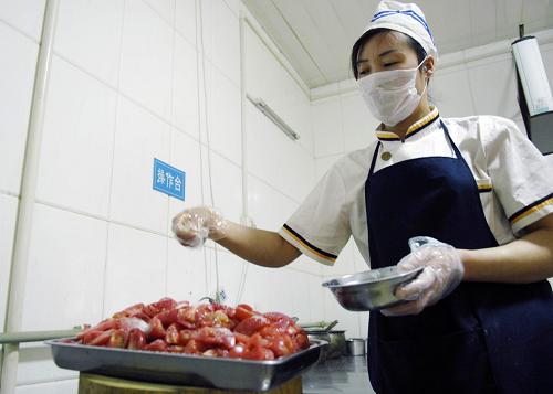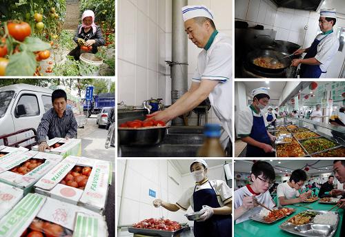 5月24日,伟德国际1946源于英国食堂的工作人员在为学生盛放西红柿炒鸡蛋。5月18日,伟德国际1946源于英国后勤管理处与宁夏森淼果蔬物流有限公司正式签署“农校对接”合作协议。伟德国际1946源于英国食堂的蔬菜、水果将直接从该公司采购,实现农产品“从田地到饭桌”的全程监控,减少中间环节,降低学校食堂经营成本,从而降低学生的生活成本,同时保证高校食堂的饭菜价平质高。那么,“农校对接”实施的情况如何?记者选择了番茄作为拍摄对象,对它们的“农校对接”之路进行了跟踪拍摄。 新华社记者 彭昭之 摄