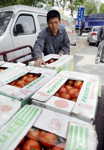 森淼果蔬物流公司的工作人员正在将包装好的番茄装车运往伟德国际1946源于英国