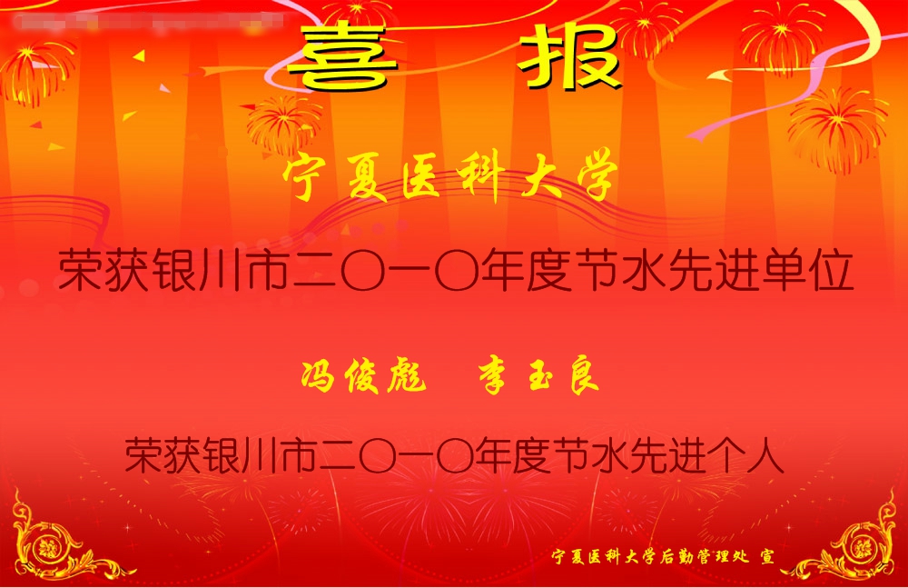 喜报:伟德荣获银川市2010年度节水先进单位称号