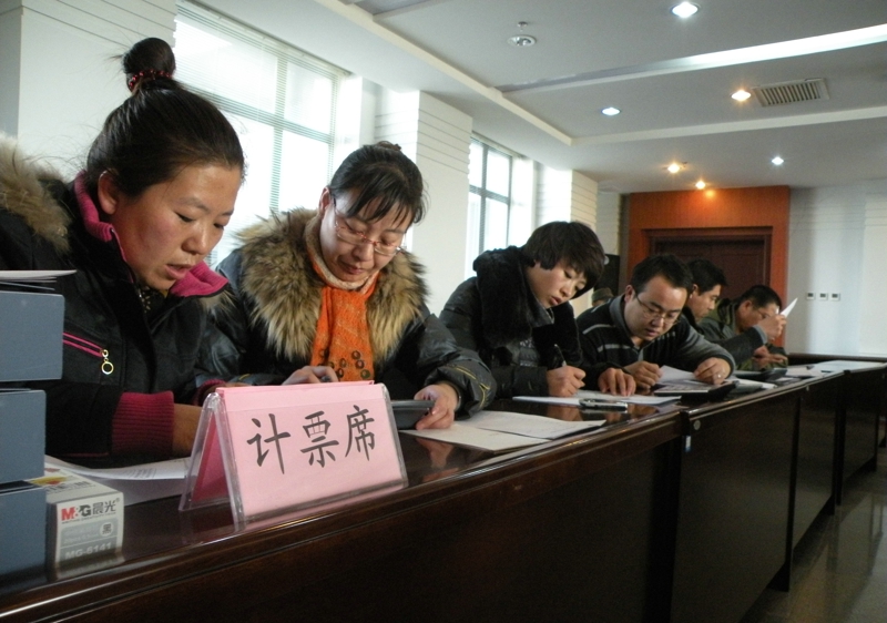 接着后勤管理处各科、中心16名科级干部依次向领导和群众做了总结报告。总结完毕后向参会人员发放了“科技干部考核测评表”,为了体现公开、公平、公正原则,本次会议特别设置了3个计票小组,邀请老职工李玉良担任监票人,并邀请财务处胡丽红担任核分工作。经过紧张的计票核票对16科级干部民主测评的分数进行了排名并现场向参会人员公布排名结果。