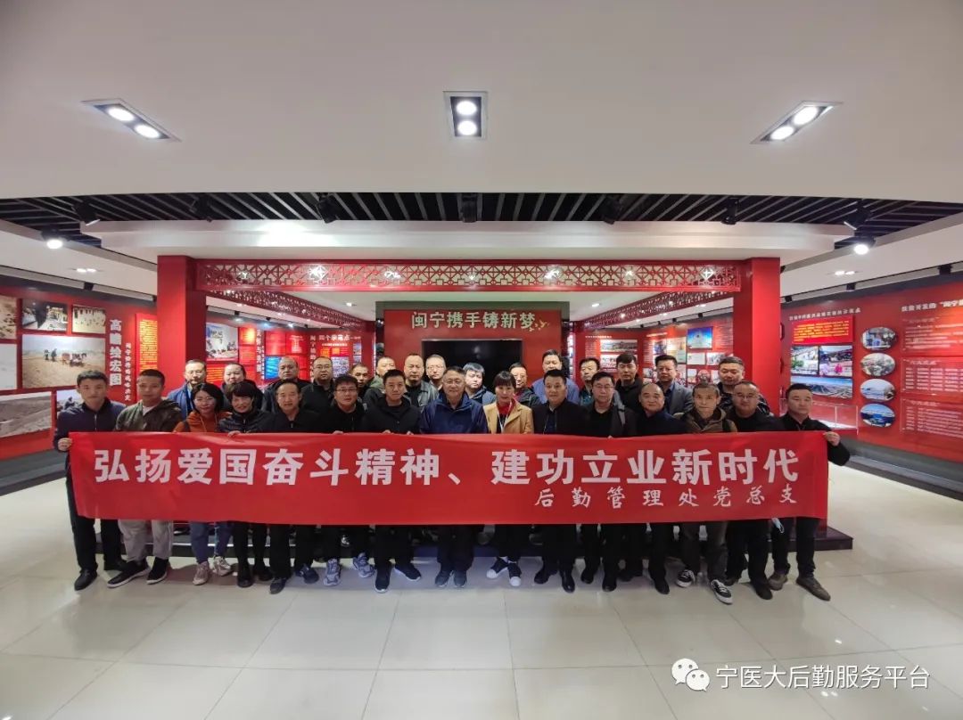 为增强党组织的凝聚力,弘扬爱国奋斗精神,重温党的光辉历程,深刻感悟党的宗旨初心和使命,树立后勤人艰苦奋斗、自强不息的品质。11月13日,后勤管理处党总支、分工会组织开展 “弘扬爱国奋斗精神、建功立业新时代、助力脱贫攻坚”走进闽宁镇主题党日活动,党员干部、入党积极分子及职工代表34人参加了活动。