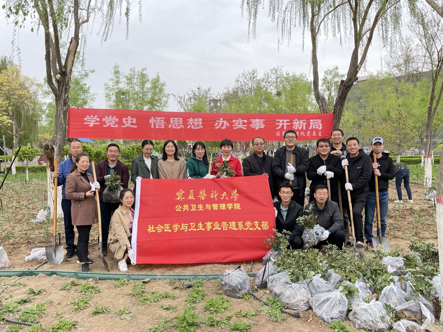 4月23日下午,后勤管理处党总支一支部与社会医学与卫生事业管理系党支部联合开展“学史力行义务绿化种植”主题党日活动,两个支部党员教职工20多人参加。