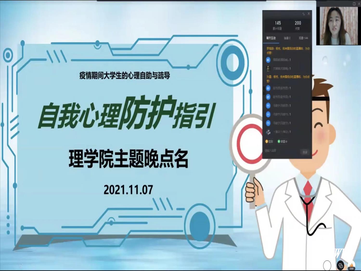 11月7日,为做好疫情期间学生心理健康指导,理学院组织开展以“自我心理防护指引”为主题的线上主题晚点名活动,学院全体学生在线上参加了会议。会上,辅导员结合学生学习生活的实际,从疫情期间大学生常见的心理...