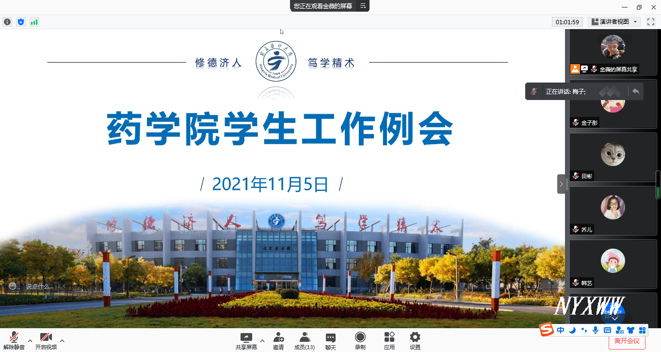 11月5日上午,药学院利用腾讯会议平台召开线上本月学生工作例会。会上,学院党委书记孙冬梅提到,在疫情防控期间,所有老师务必高度重视疫情防控工作,强化对学生管理风险点的排查检查,辅导员应做到时刻关心学生...