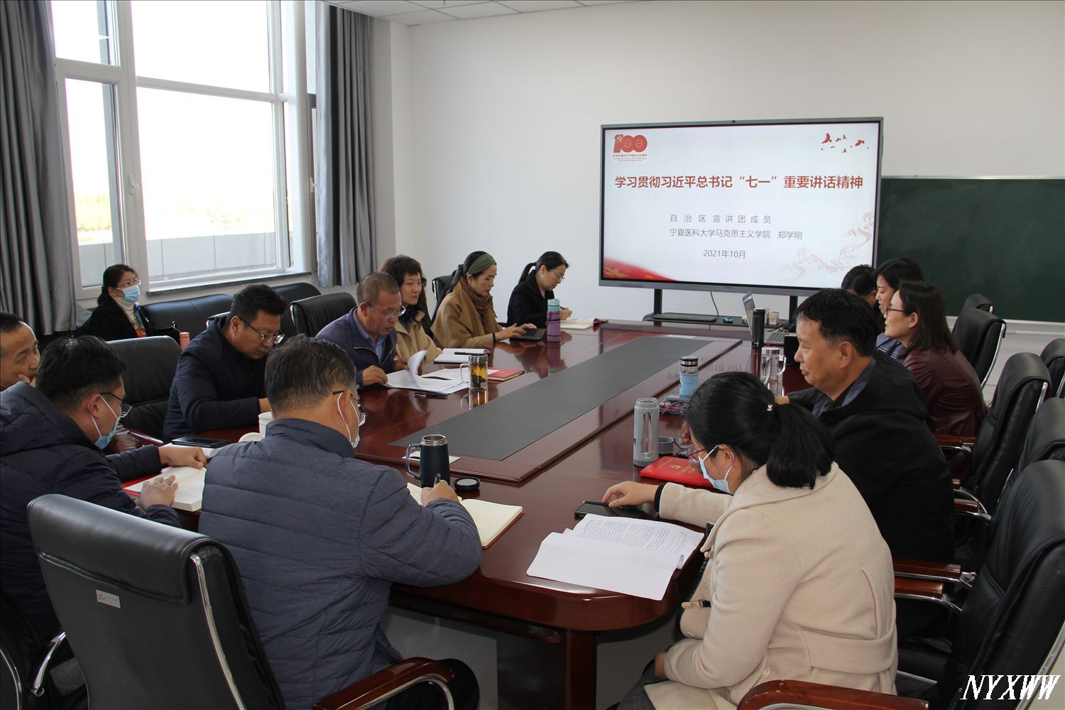 10月20日下午,马克思主义学院党总支举行中心组(扩大)学习会,学院全体党员和教职工参加会议。会议由学院党总支书记王想平主持。学习会上,自治区宣讲团成员、学院副院长郑学刚作题为 “学习贯彻习近平总书记“...