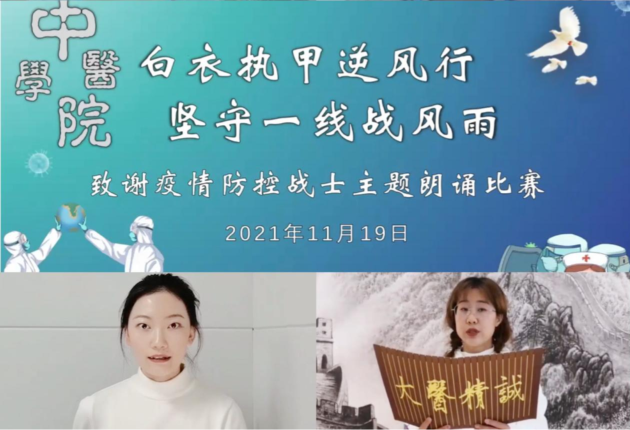 11月19日晚,为致敬在抗疫一线辛勤付出的工作人员,中医学院在钉钉线上举办“白衣执甲逆风行,坚守一线战风雨”致敬抗疫人员主题诵读比赛。学校学生处、团委老师出席活动,中医学院全体师生参加活动。跟随2019级...