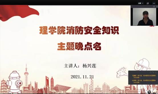 11月21日下午,为保障校园消防安全,严防火灾事故发生,进一步提高学生消防安全意识,理学院组织全体学生开展以“消防安全知识”为主题的线上主题晚点名教育活动。辅导员为同学们介绍了校园内常见的一些消防安全...