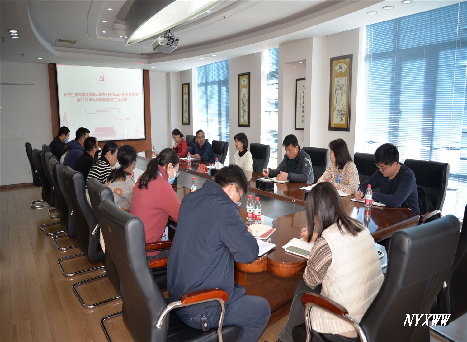 11月29日,研究生院召开学习十九届六中全会精神暨2021年秋季学期第2次工作会议,对学习宣传贯彻党的十九届六中全会精神推进当前工作做了专题部署,各培养单位研究生日常教育管理负责人员和相关工作人员参加了会议...