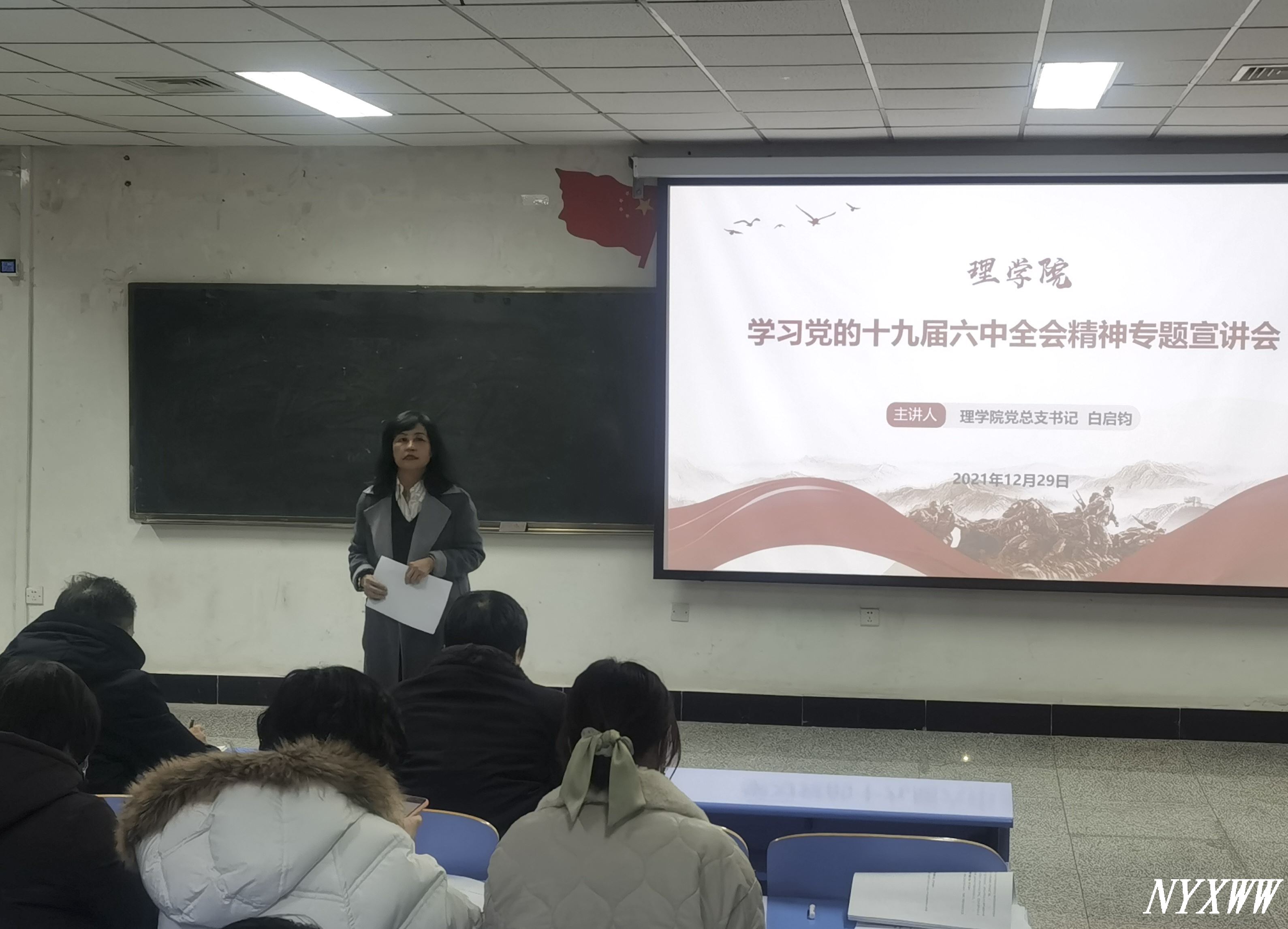 12月29日上午,理学院举办学习党的十九届六中全会精神专题宣讲会,学院党总支书记白启钧以“立德树人担使命 奋进赶考新征程”为题为学院全体教职工和学生作专题宣教。白启钧从深刻认识总结党的百年奋斗重大成就和...