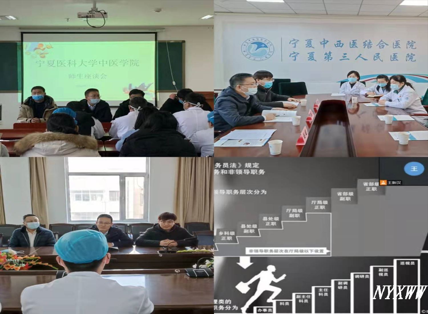 1月11日下午,为全面推进2022年就业指导工作,中医学院党委书记邱鹏飞一行三人来到自治区中医医院、自治区中西医结合医院、银川市中医医院等实习点,走访看望本、硕实习生和见习生。座谈会上,邱鹏飞教育全体学生...