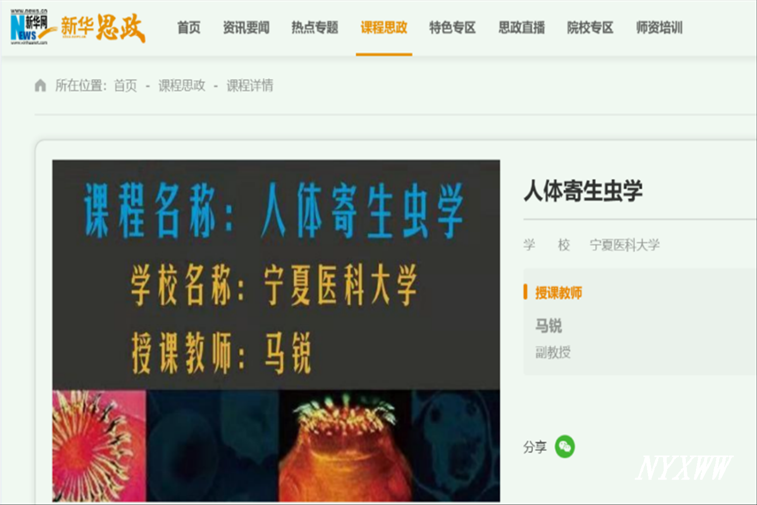近日,由基础医学院病原生物学与医学免疫学系承担的课程思政案例课《人体寄生虫学》,正式在新华网上线,这也是伟德国际1946源于英国首个上线新华网的课程思政案例课。课程主讲教师基础医学院副教授马锐以“疟原虫”为例...