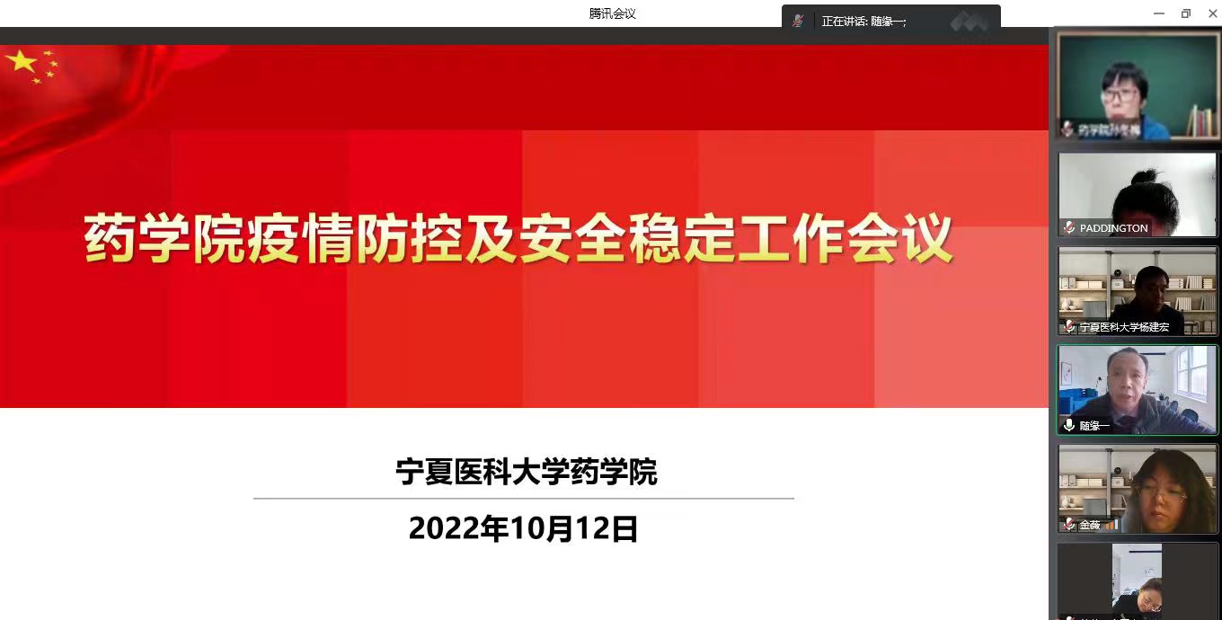 10月12日上午,药学院在线上召开疫情防控及安全稳定工作会议。药学院班子成员,各办、学系(中心)负责人、工程中心研究室负责人参加会议,学院副院长张立明主持会议。会议传达学习了学校疫情防控和校园安全稳定...