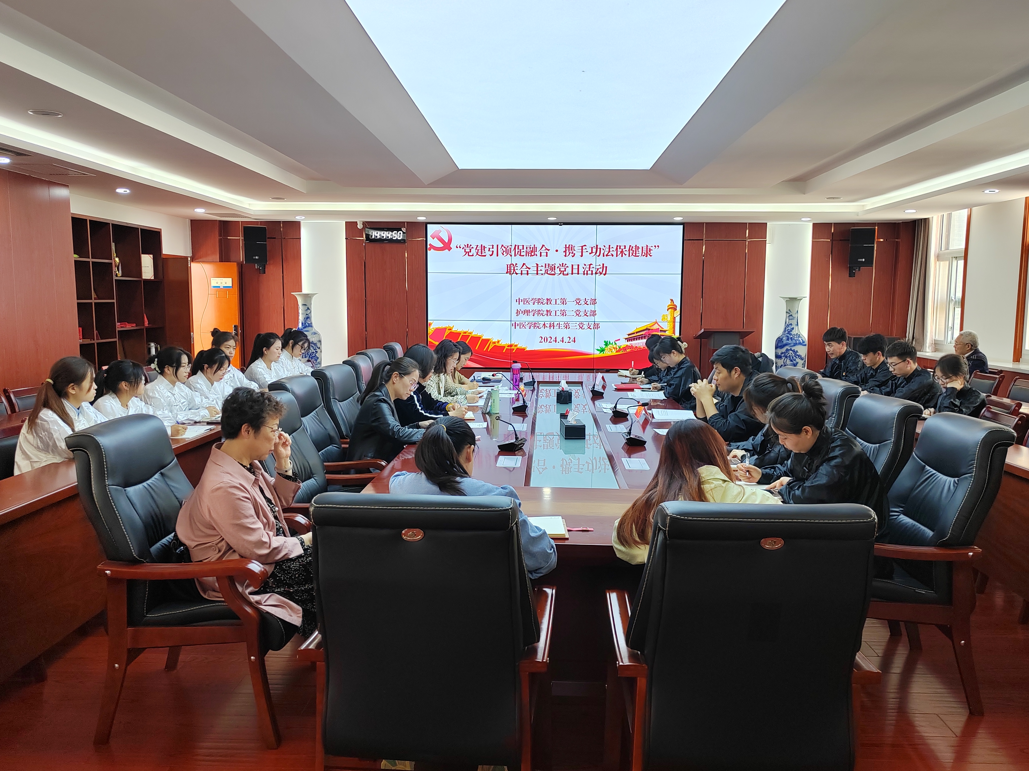 4月24日,中医学院教工第一党支部、本科生第三党支部联合护理学院教工第二党支部共同开展“党建引领促融合 携手功法保健康”主题党日活动。各党支部全体党员和入党积极分子参加活动。活动中,师生共同学习了习近...