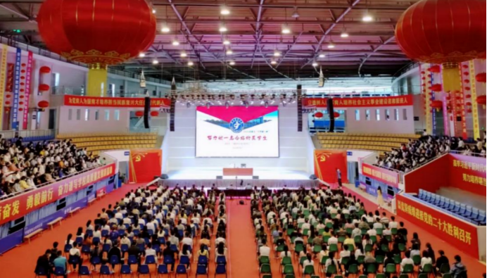 9月1日上午,学校党委书记田丰年在雁湖校区弘毅体育馆主会场为2022级本专科新生讲授“开学第一课”,双怡校区分会场通过视频同步直播,两千余名新生共同聆听大学第一课。学校党委副书记朱建华主持授课活动。“第...
