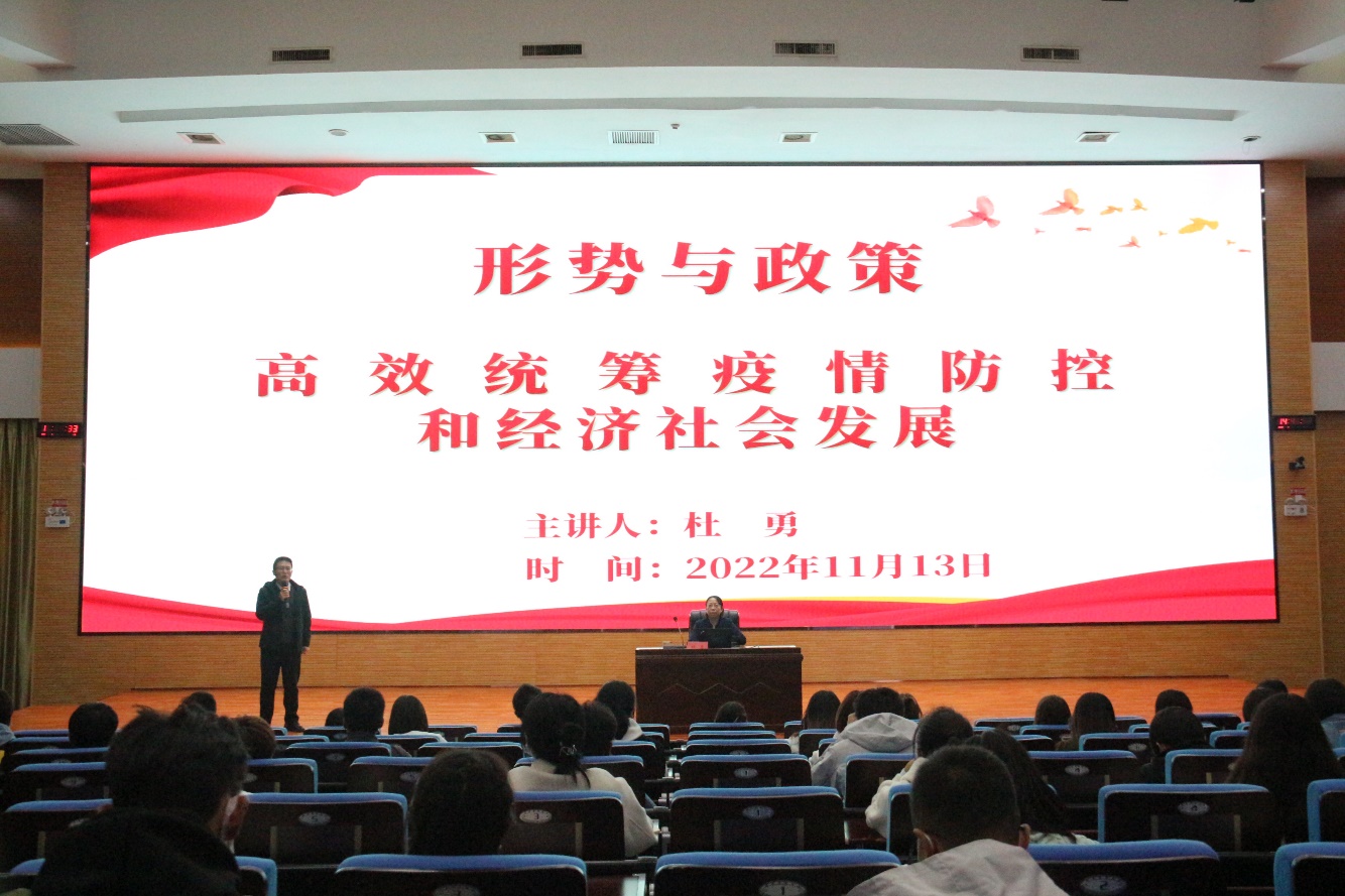 11月13日下午,学校副校长杜勇以“高效统筹疫情防控和经济社会发展”为题,为中医学院2021级全体学生讲授“形势与政策”课。杜勇主要从“疫情防控措施科学有效”“经济社会发展稳中向好”“坚定夺取双胜利的信心...