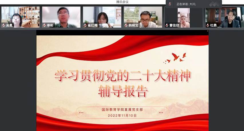11月10日,国际教育学院以线上形式举办了学习贯彻党的二十大精神专题辅导讲座,学校副校长杜勇为国际教育学院全体教师作专题辅导。讲座由国际教育学院直属党支部书记吴川主持。杜勇结合党的二十大精神报告,围绕...