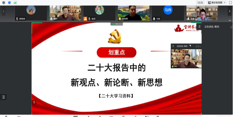 12月22日,学校副校长黄河为护理学院、附属中医医院全体教职工线上宣讲党的二十大精神,宣讲会由护理学院党委书记司琼辉主持。会上,黄河以“党的二十大报告中的新观点、新论断、新思想”为主题,从22个方面对党...