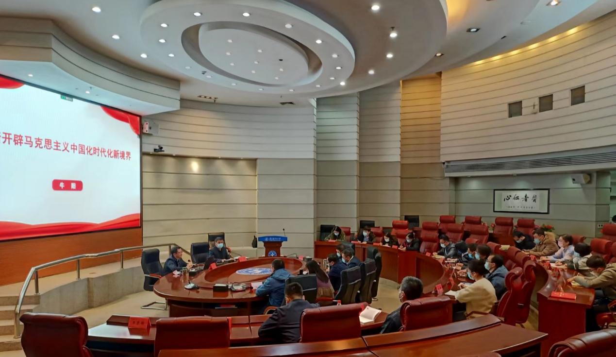 12月13日下午,学校党委副书记牛阳在雁湖校区正德楼国际会议厅为机关党员干部宣讲党的二十大精神。机关驻雁湖校区人员线下参会,居家办公人员通过腾讯会议线上参加学习。宣讲会由学校党委组织部常务副部长、机关...