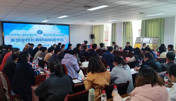 3月1日下午,为进一步深化院校二级管理改革,推动学校高质量发展,学校校长姜怡邓带领深改办一行5人到基础医学院开展调研工作,基础医学院领导班子成员、各行政办公室人员、各学系(中心)负责人及中青年教师代表...