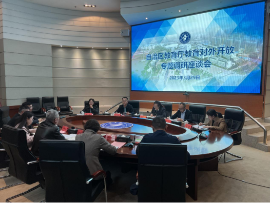 3月29日下午,自治区教育厅对外合作交流处处长马小燕,自治区党委外事办友协办主任李涛,自治区科技厅、自治区党委港澳台办负责人一行5人来校开展教育对外开放专题调研。学校党委副书记朱建华主持调研座谈会。朱...