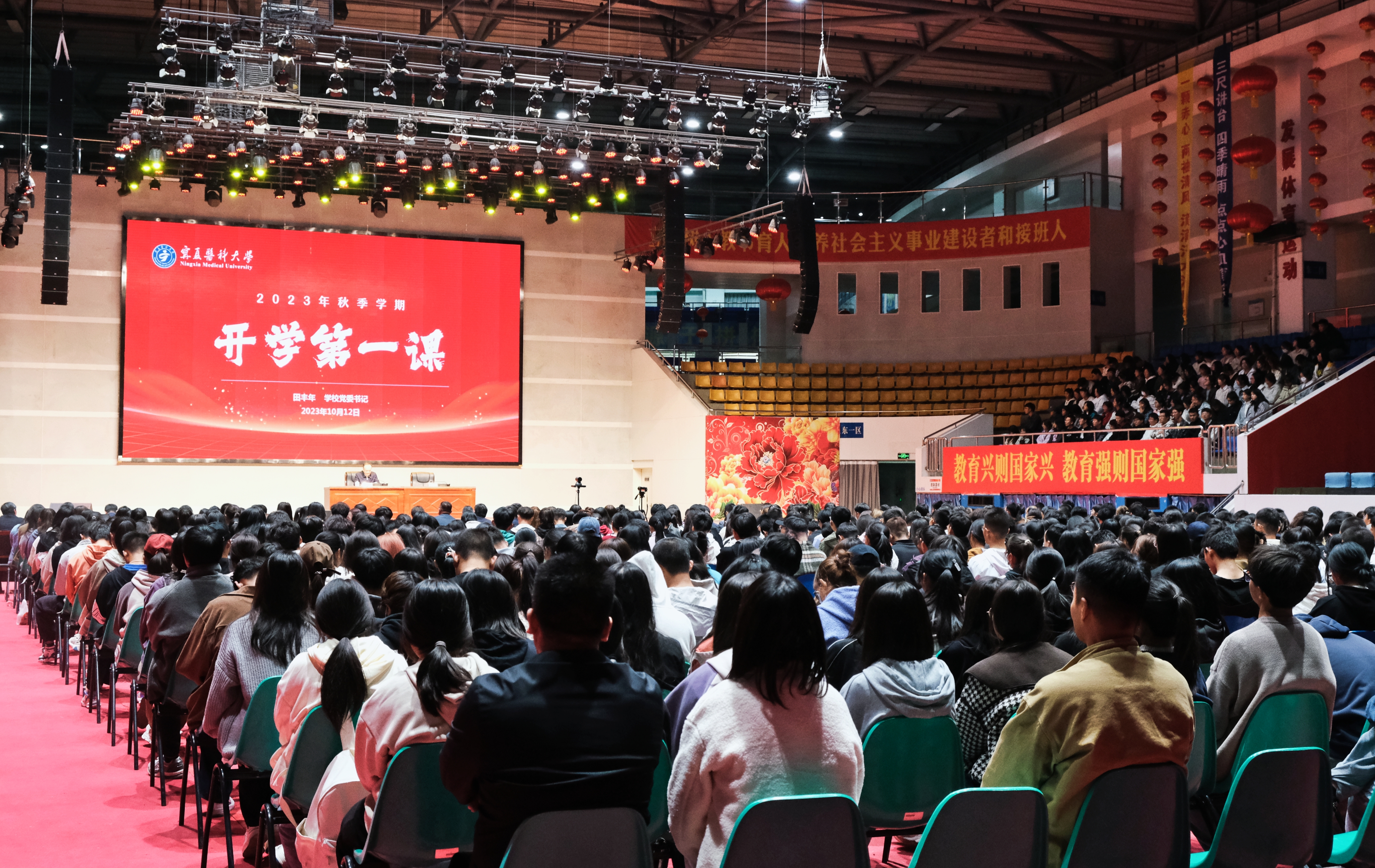 10月12日晚,学校党委书记田丰年在雁湖校区弘毅体育馆主会场为2023级本专科新生讲授“开学第一课”,雁湖校区尚行会议中心分会场、双怡校区大学生活动中心分会场同步直播,2023级全体本专科新生共同聆听。学校党...