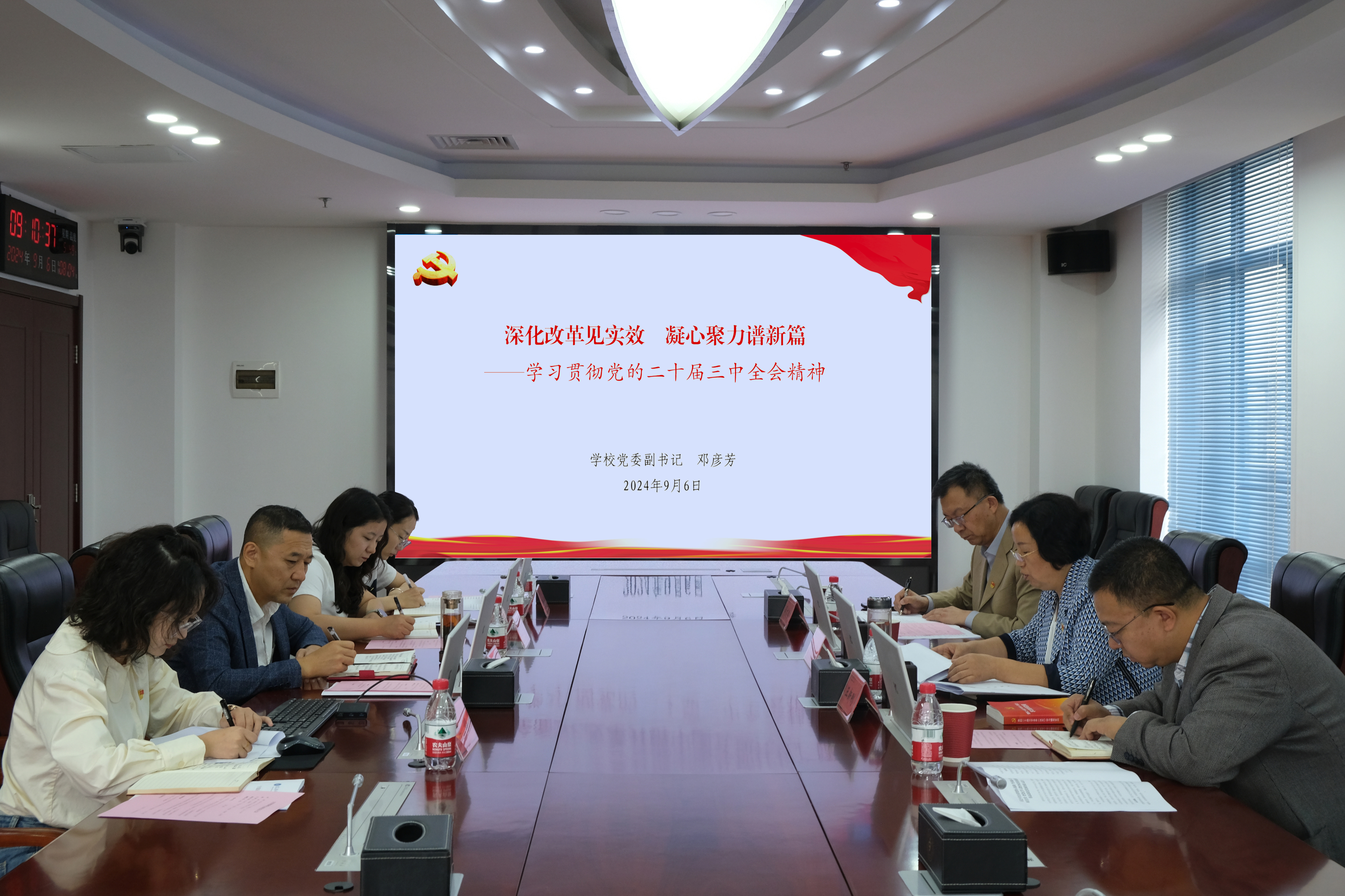 9月6日,学校党委副书记邓彦芳以普通党员身份参加宣传统战党支部党员大会,并为党支部讲授党课,支部全体党员聆听党课。邓彦芳以学习贯彻党的二十届三中全会精神为主题,从党的二十届三中全会的重大意义,《中共...