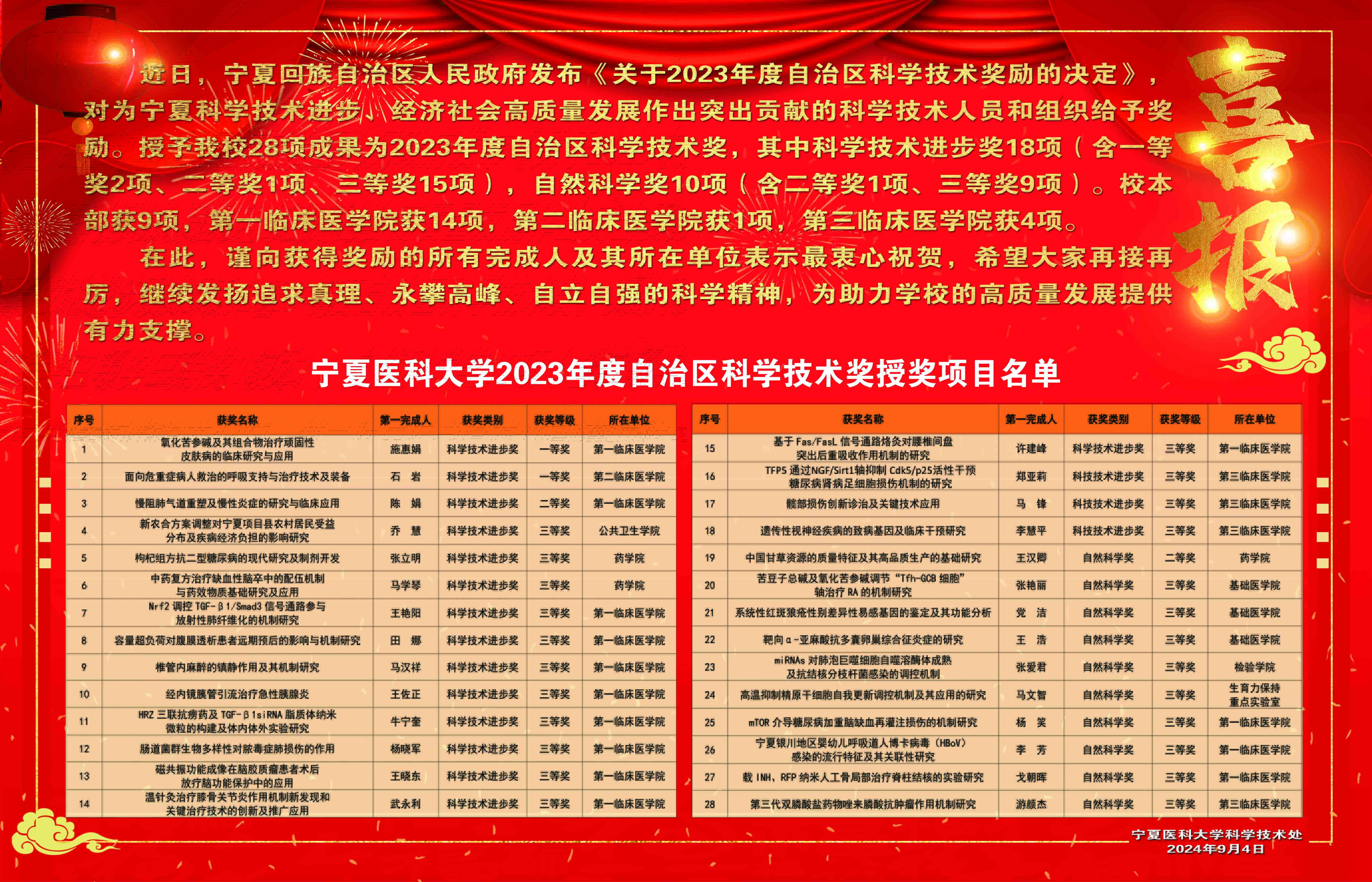 近日,宁夏回族自治区人民政府发布《关于2023年度自治区科学技术奖励的决定》,对为宁夏科学技术进步、经济社会高质量发展作出突出贡献的科学技术人员和组织给予奖励。伟德28项成果被授予2023年度自治区科学技术...