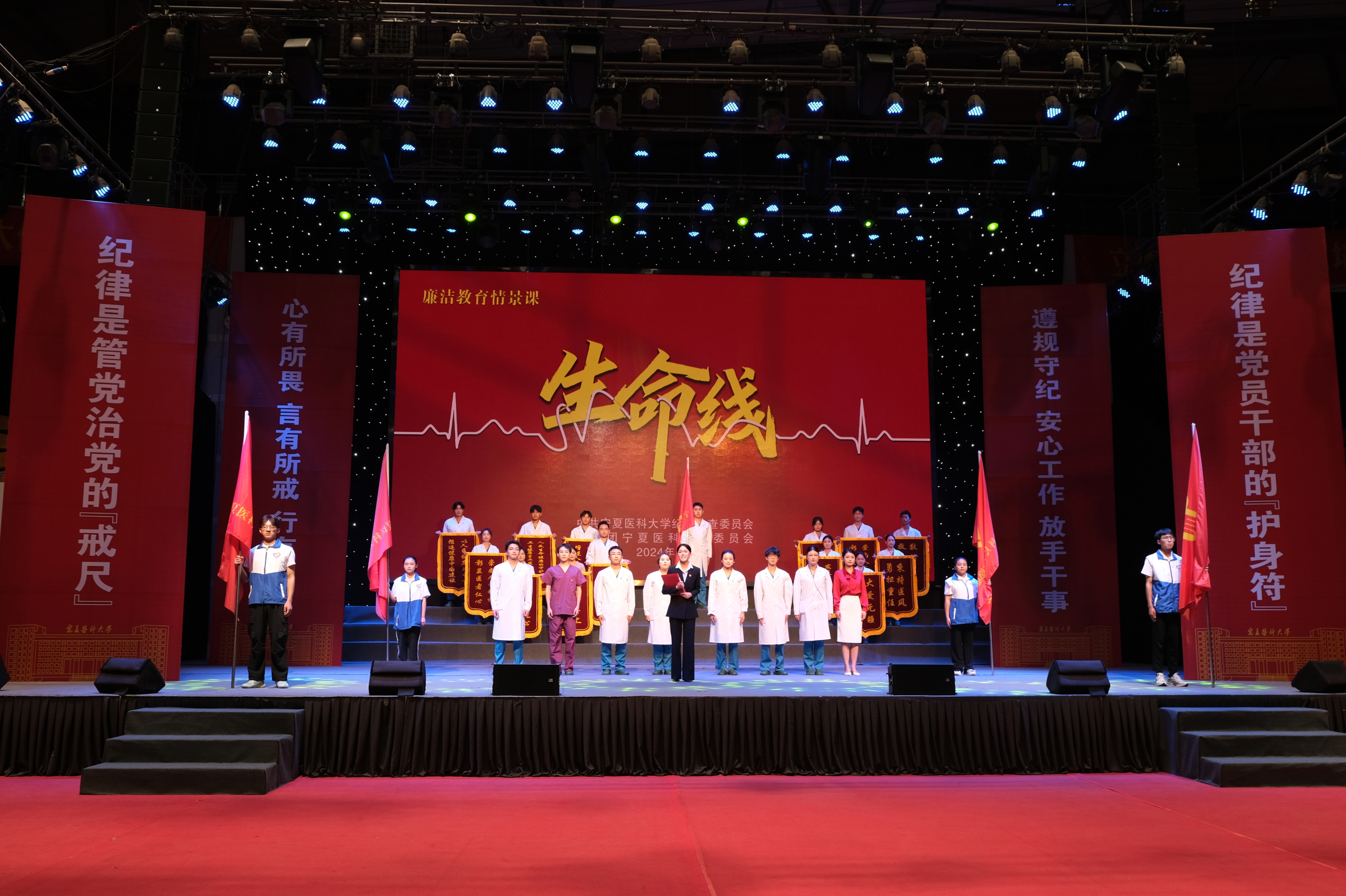 9月4日至5日,由学校原创编排的廉洁教育情景课《生命线》在弘毅体育馆开讲,学校领导、党员干部、师生代表3000余名参加。情景课《生命线》以医学生方向明同学“入党”为切入点,围绕政治纪律、组织纪律、廉洁纪律...