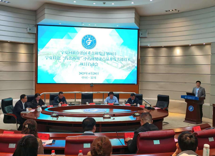4月28日,自治区重点研发计划重大项目“宁夏特色‘药食两用’中药材健康产品开发关键技术”启动会在正德楼国际会议厅召开。学校党委常委、纪委书记、监察专员张立杰,科技厅社会发展科技处张磊,科技处、药学院负...