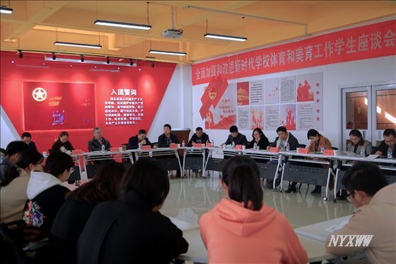 11月13日,学校团委召开全面加强和改进新时代学校体育和美育工作学生座谈会,学校党委副书记朱建华、研工部、学生处、教务处、马克思主义学院、体育部负责同志,各学院分管学生工作的党委副书记,体育部教师代表...