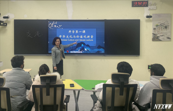 3月11日下午,学校副校长刘志宏以“中华文化与价值观”为主题在雁湖校区应谦教学楼370教室,为国际教育学院2019级1班留学生讲授开学第一课。国际教育学院党政班子领导、辅导员及教师代表参加活动。刘志宏分别从“...