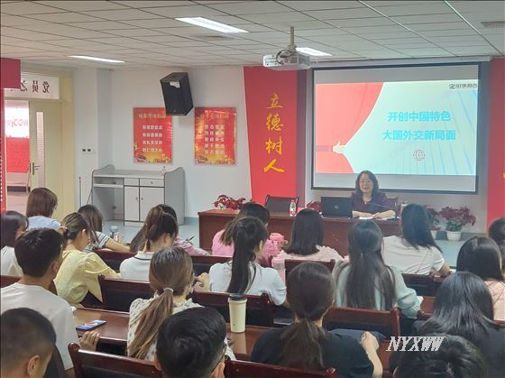 6月4日,副校长郝银菊在厚生楼三楼党员之家,为基础医学院师生专题讲授形势与政策课。基础医学院专兼职辅导员及各年级学生100余人参加。郝银菊以“开创中国特色大国外交新局面”为主题,围绕“世界怎么了?我们怎...